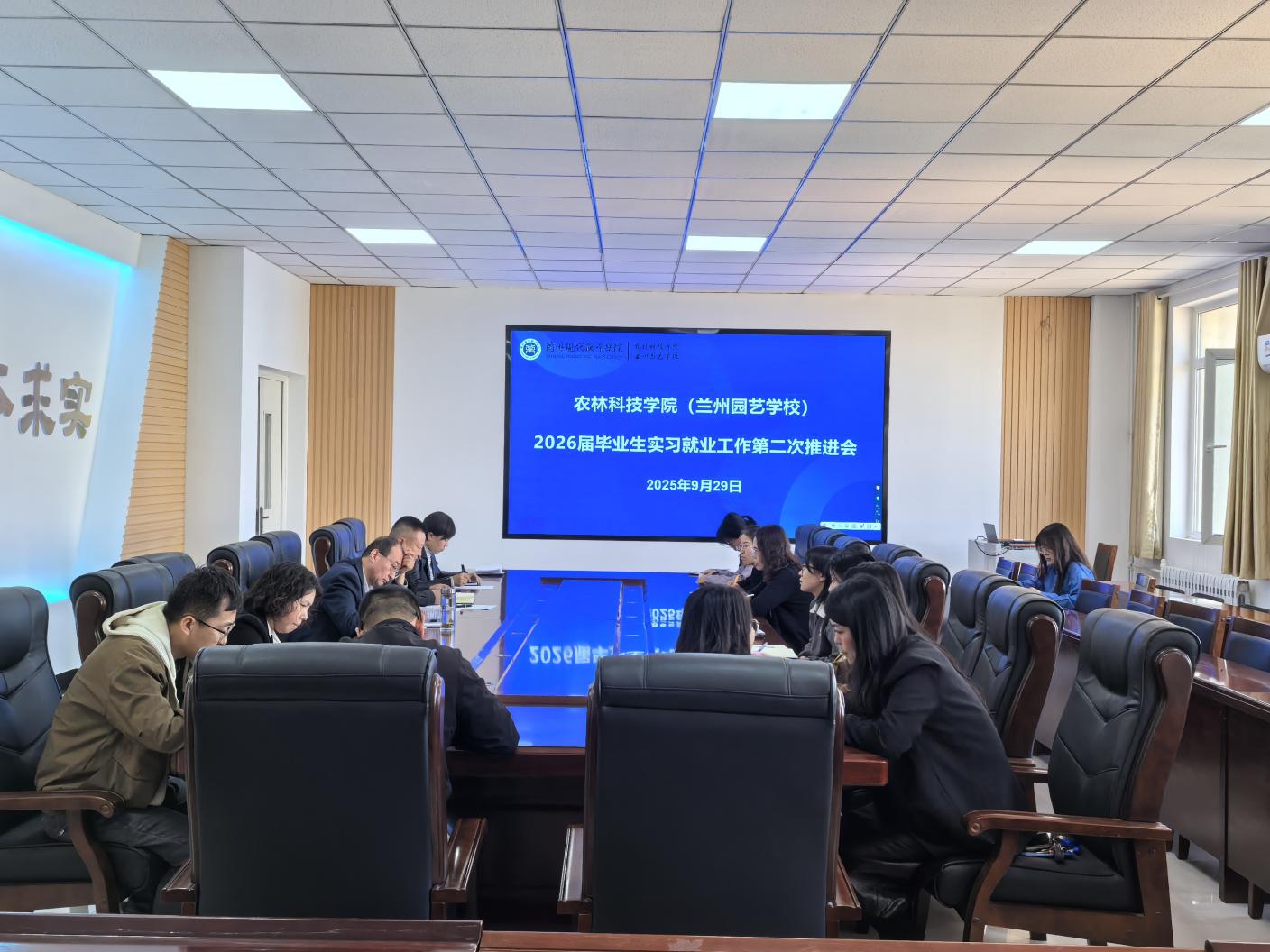 为扎实推进2026届毕业生实习就业工作,进一步明确任务、压实责任,农林科技学院(兰州园艺学校)于近日组织召开了2026届毕业生实习就业工作第二次推进会。全体毕业生实习指导教师、辅导员及招生就业办公室工作人员参加了本次会议。