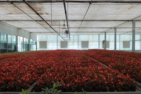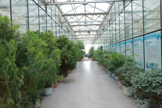 花房为智能温室,于2020年10月开工建设,2020年12月竣工,总面积达6237平方米,其中包含420平方米的管用房。温室内设施先进,顶部覆盖双层骨架双层塑料薄膜,四周覆盖中空玻璃、聚碳酸酯阳光板等,并配套有内外遮阳系统、内保温系统、顶部开窗系统等多种现代化设备,能为花卉生长提供良好的环境。