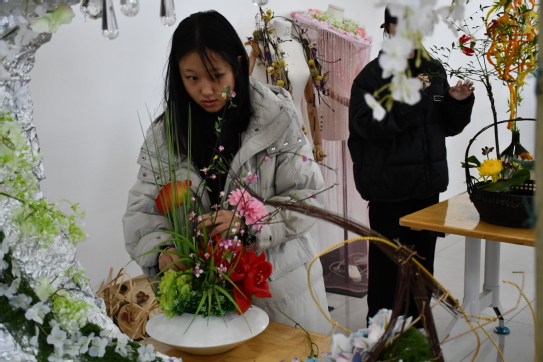 实训室布局科学合理,实训室内设有宽敞的操作台及齐全的花艺工具。这里是学生创意展示的舞台,主要进行中西式插花、花束包装、婚礼花艺、会场布置、立体装饰等项目的实训。通过反复练习,学生能够熟练掌握各类花艺设计的基本技法与色彩搭配原则,提升审美与创作能力。实训室配备多媒体教学设备,方便教师进行现场演示、理论讲解,并组织学生进行方案讨论、作品分析与案例复盘,实现“教、学、做”一体化。实训室紧密对接行业需求,不仅服务于日常的《花卉栽培技术》《花卉病虫害防治》《插花艺术》《花店经营与管理》等专业课程教学,还积极承接“1+X”职业技能等级证书考核、校级及省级技能大赛,并鼓励师生参与社会服务项目,将课堂所学应用于实际,为甘肃乃至全国的花卉产业与花艺行业输送着源源不断的优秀技能人才。